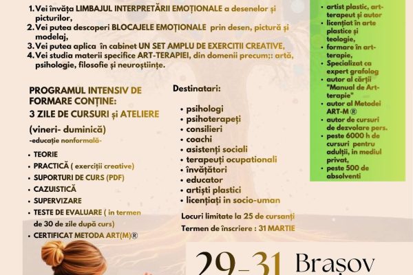 Curs ART-TERAPIA centrată pe COPII și ADOLESCENȚI/ Zoom