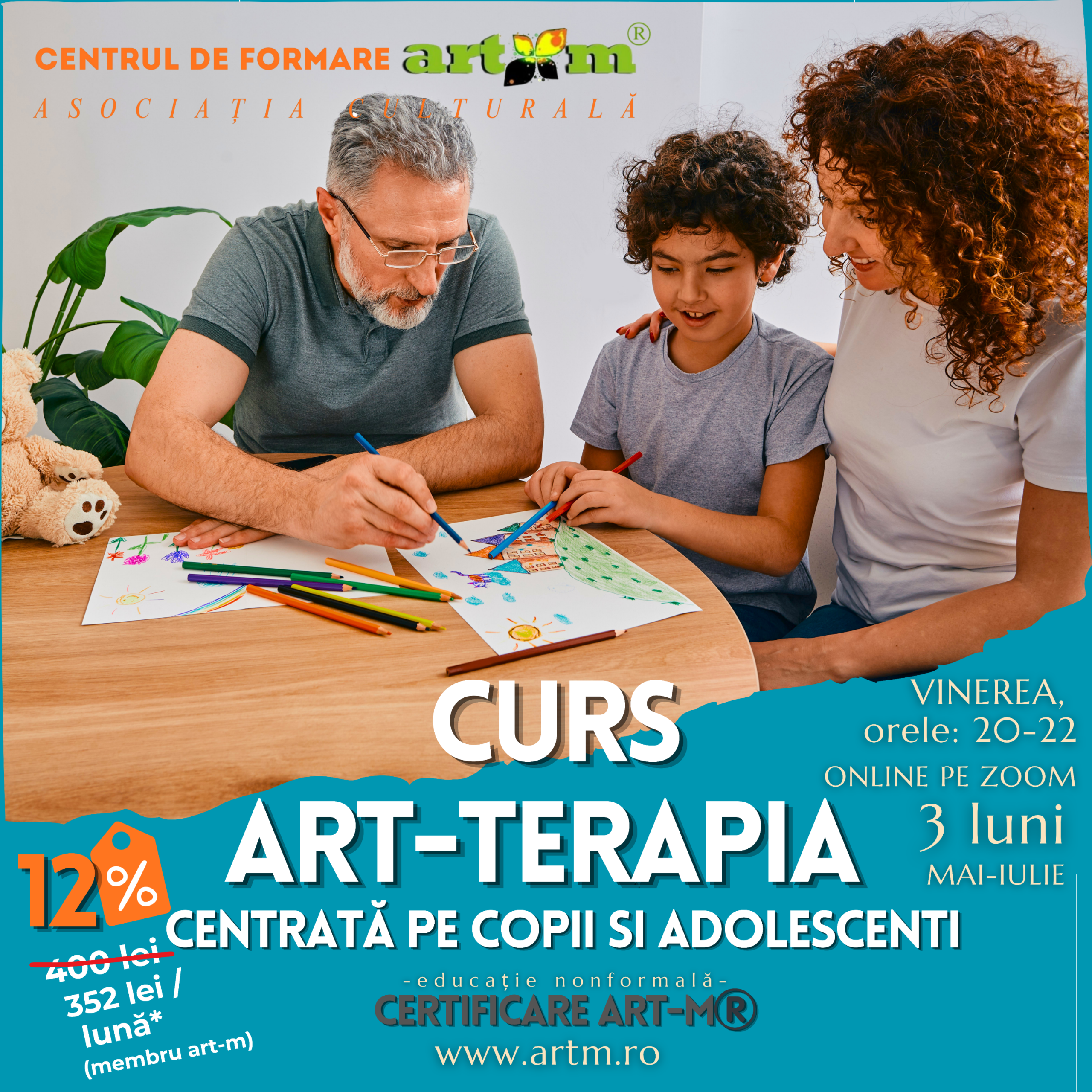 Asociația Culturală pentru Arte Plastice și Muzică ”ART-M” MARAMUREȘ și CENTRUL DE FORMARE ART-M organizează cursul de aprofundare în ART-TERAPIE/ DEZVOLTARE PERSONALĂ PRIN ARTĂ (metoda artelor plastice) prin educație non-formala, cu durata de 3 luni.